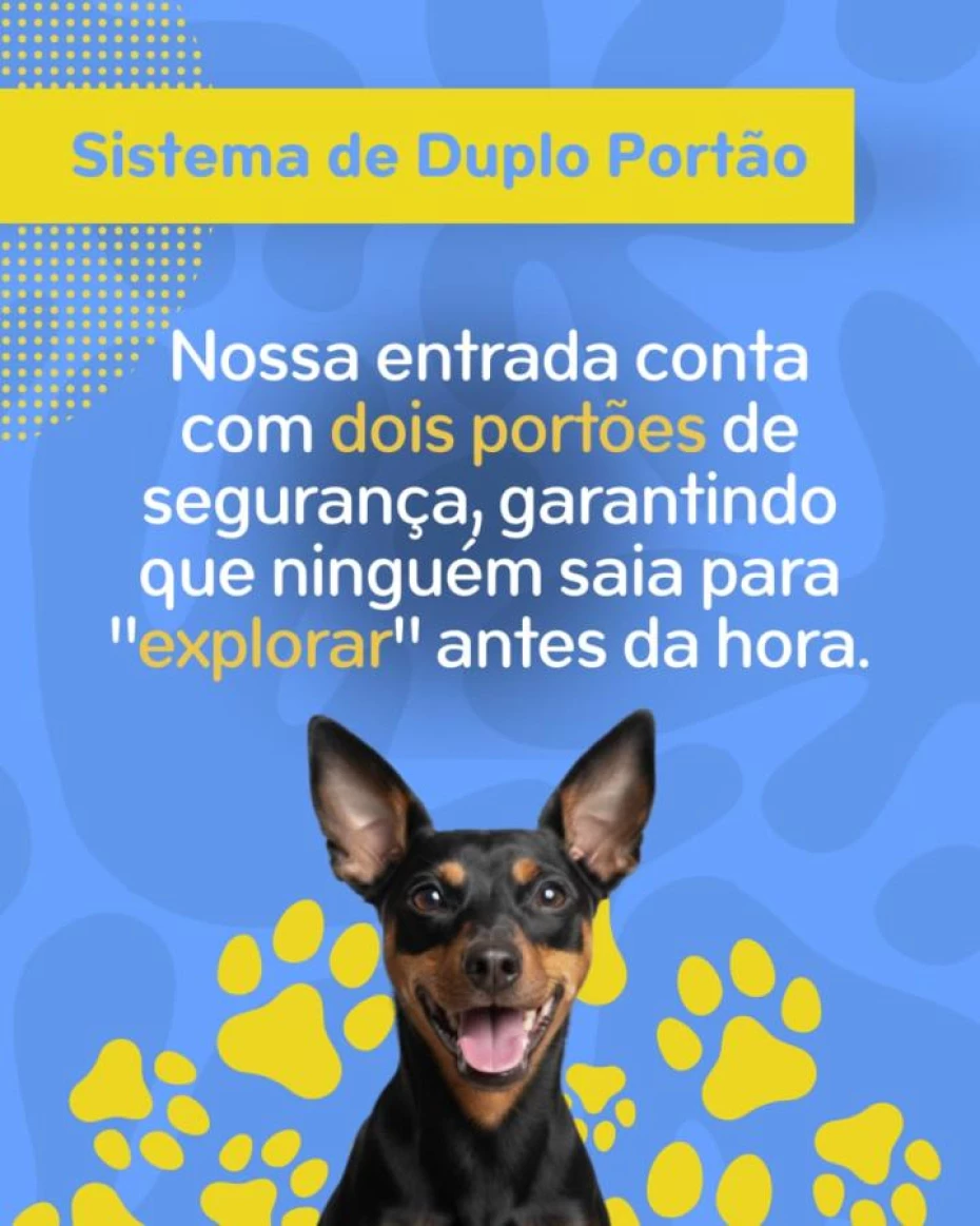 - Hospegagem para quando os tutores precisam se ausentar e querem garantir a segurança e conforto dos pets.